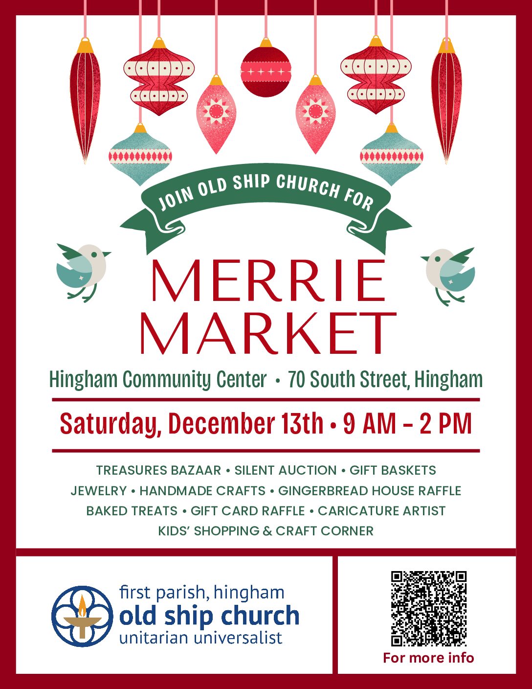 First Parish's Old Ship Merrie Market December 13th from 9:00 Read more